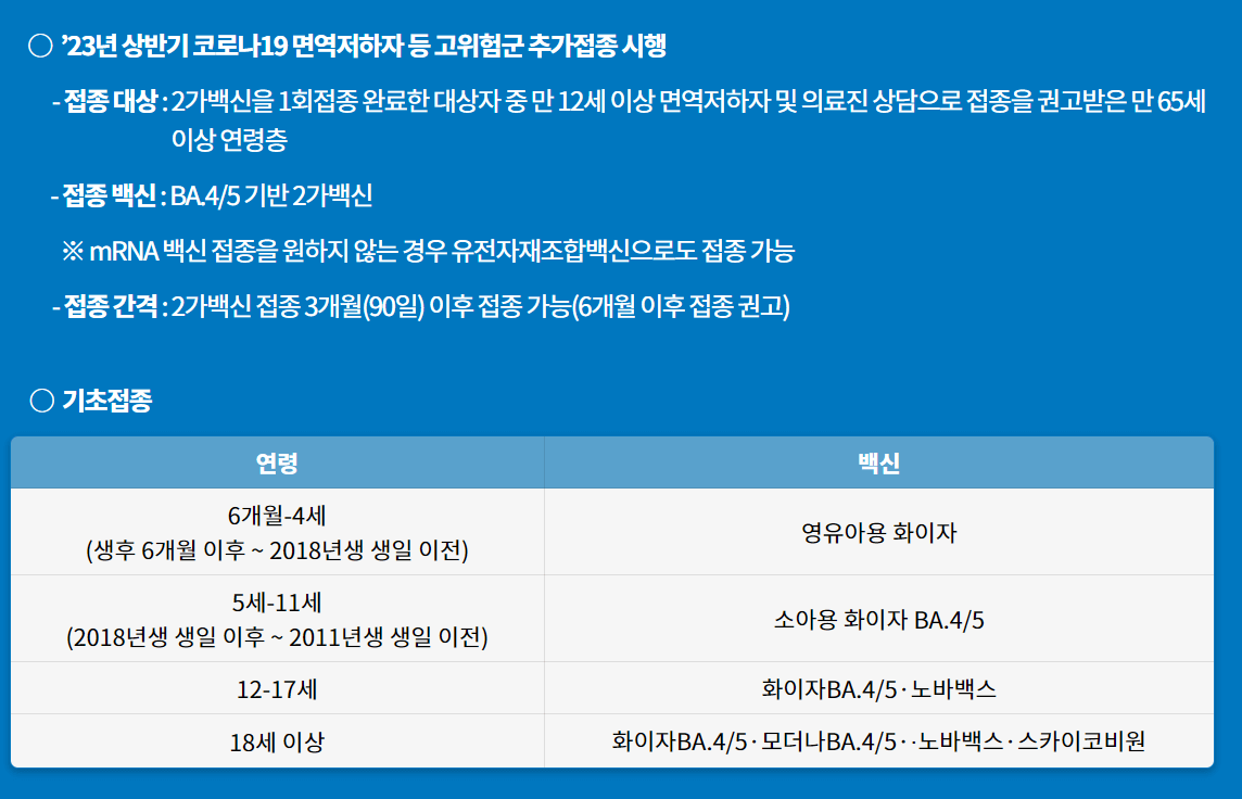 질병관리청은 XBB.1.5 타깃 백신을 10월 중 접종할 계획이라고 발표하였습니다. 우선 접종 대상자는 고위험군으로 65세 이상인 자, 요양시설 관련자, 면역저하자, 기저질환을 가진 사람, 고혈압, 당뇨를 가진 사람 등입니다. 최근 유행 중인 변이 바이러스도 xbb계열인 만큼 xbb1.5 기반 백신만으로도 충분한 효과가 있을 것이라고 합니다. 고위험군 중 아직 백신을 맞지 않으신 분들이라면 예방접종 일정 확인해 보시고 미리 감염 예방하세요.