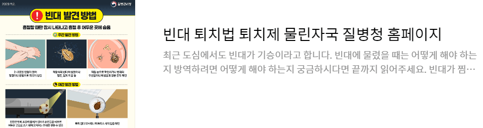 빈대 퇴치법 퇴치제 물린자국 질병청 홈페이지